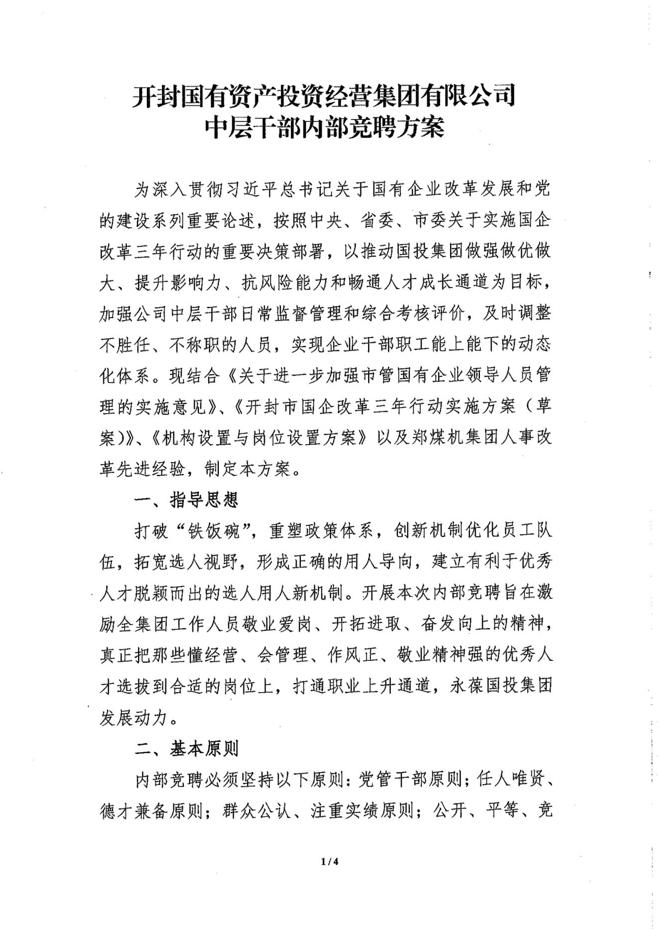 關(guān)于下發(fā)《開封國有資產(chǎn)投資經(jīng)營集團(tuán)有限公司中層干部內(nèi)部競(jìng)聘方案的通知》